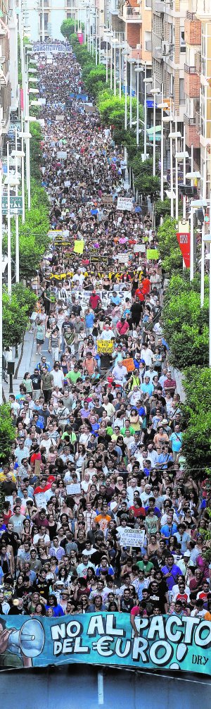 4. La ruptura generacional. Los jóvenes del 15-M (que  en su mayoría tienen entre 18 y 30 años) han nacido después de la  Constitución de 1978 y están padeciendo los muchos déficits de la  democracia española, así que no les sirve de nada que sus padres les  sigan contando las excelencias de la gloriosa transición democrática,  como si con ella se hubiera llegado al final de la historia y ya no  hubiera nada que mejorar. Sobre todo cuando esa maravillosa democracia,  que puso fin a la dictadura franquista, no ha sido capaz de enfrentarse a  la dictadura de los mercados,  sino que ha sacrificado y recortado los derechos de la ciudadanía para  preservar los beneficios de los banqueros, los especuladores, las  empresas del IBEX y las grandes fortunas. El resultado es que la nueva  generación de españoles, que es la mejor preparada de nuestra historia,  es también esa “generación perdida” de la que ha hablado abiertamente el FMI, esa “juventud sin futuro”  que se sabe destinada a vivir peor que sus padres, con menos derechos y  menos ingresos, porque, como dicen los propios indignados, no tienen  “ni curro, ni casa, ni pensión, ni miedo”.